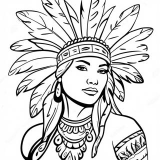 Elegant Native American Woman With Feather Headdress Coloring Page